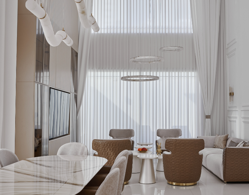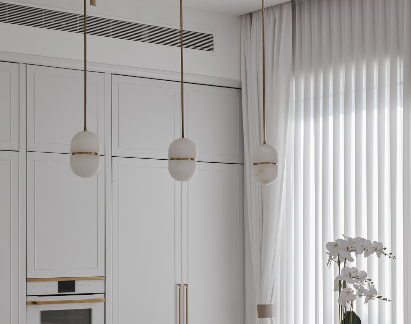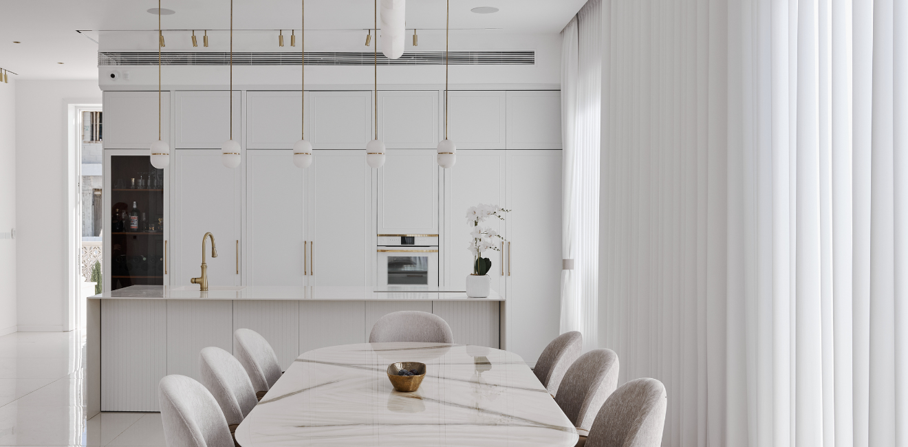 תשומת לב מיוחדת הושקעה בהתמודדות עם עומס החום הנוצר מהויטרינה המערבית, נבנה ארון קיר ייעודי אשר בתוכו הוסתרו שתי יחידות מתועלות אנכיות, שמספקות מיזוג מיטבי מבלי לפגוע בנראות החלל. המערכת כולה נשלטת מבקרי טאצ' חכמים עם חיבור Bluetooth, המאפשרים שליטה פשוטה, מהירה ואלגנטית גם מהטלפון הנייד. הפרויקט כולו מהווה דוגמה לאיזון מושלם בין עיצוב, תכנון מדויק וטכנולוגיה מתקדמת שמשרתת את חיי היום-יום.