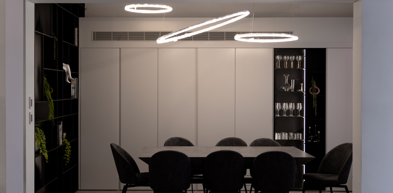 מחלקת ההנדסה של מיצובישי אלקטריק בחרה במגוון מוצרים, אשר התאימו לפרויקט זה, הן בחלל הבית והן מבחינת מיקום יחידות העיבוי שבחוץ. ביחידת הנגרות המרכזית בחלל הסלון – פינת אוכל: הותקנה יחידת מיזוג ורטיקלית, אשר סיפקה מענה יעיל, פונקציונאלי ומירבי. כל יחידות המיזוג בבית, מתממשקות לבקרה ראשית וחכמה לשליטה ותמיכה מרחוק, כך שבעל הבית יוכל לשלוט במערכות בקלות ובנוחות, בכל מקום שבו הוא נמצא.